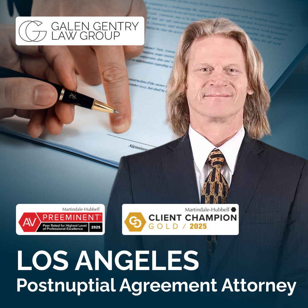 Galen Gentry assists clients in Los Angeles and Southern California with drafting, reviewing and enforcing prenuptial and postnuptial agreements to protect their interests. Call at (310) 282-7521 or contact us online using the Orange form on the right of your screen to schedule a free consultation.
